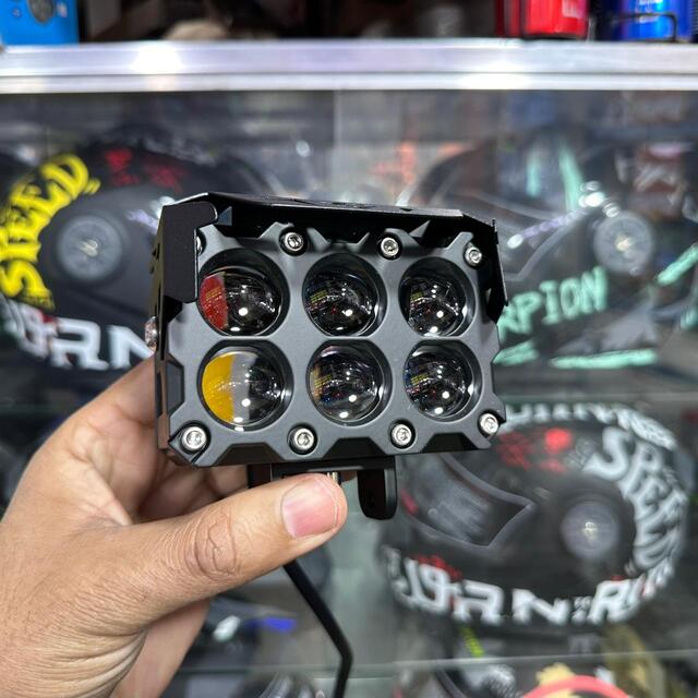 Hjg 6 Lenses Led Light With Yellow White And Devil Light For Cars & Bikes